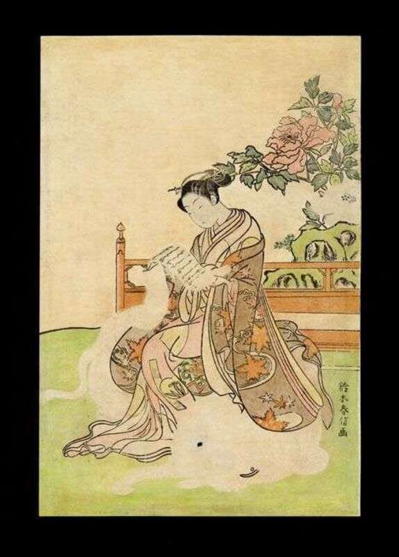 HARUNOBU SUZUKI (JAPANESE 1724-1770) WOMAN SEATED ON A WHITE ELEPHANT
