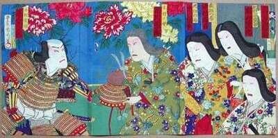 KUNICHIKA TOYOHARA (JAPANESE 1835-1900)TWO COLOR WOODCUT TRIPTYCHS