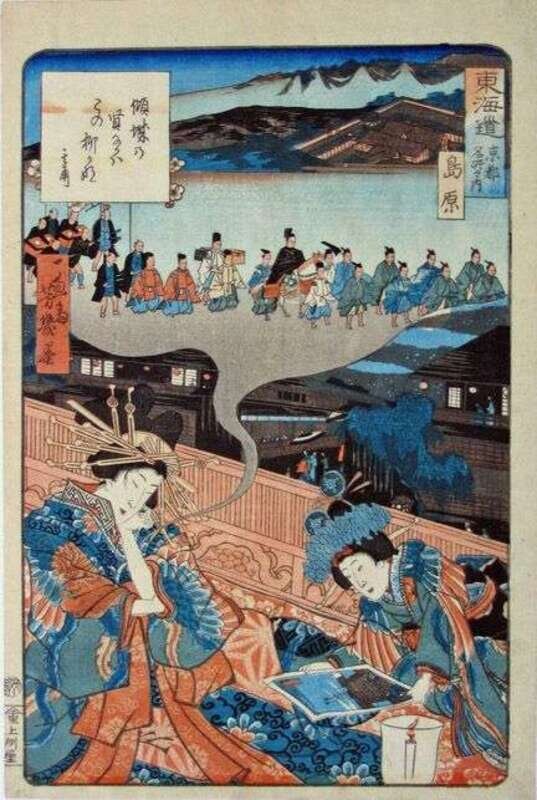 UTAGAWA YOSHIIKU (JAPANESE 1833-1904) SHIMABARA TOKAIDO KYOTO MEISHO NO UCHI