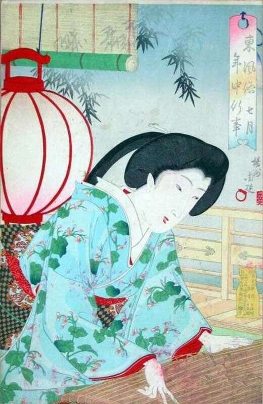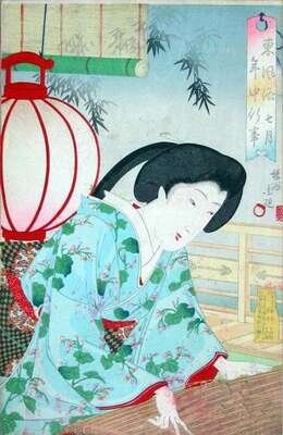 TOYOHARA CHIKANOBU (JAPANESE 1838-1912)THREE COLOR WOODCUTS AZUMA FÛZOKU NENJÛ GYOUJI (EDO CUSTOMS OF YEARLY EVENTS):SAN GATSU; SHICHI GATSU; AND HACHI GATSU