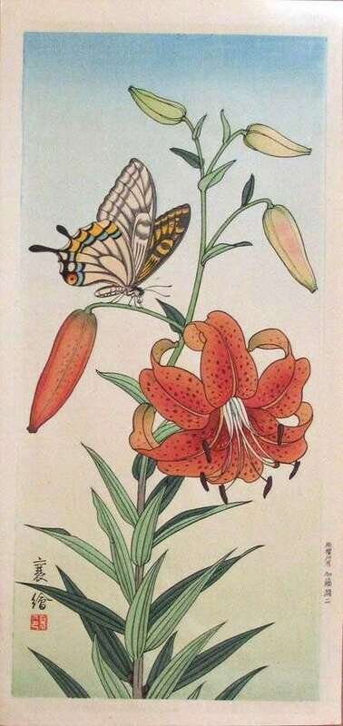 JO (JAPANESE EARLY 20TH. CENTURY) UNTITLED (BUTTERFLY AND TIGER LILY)