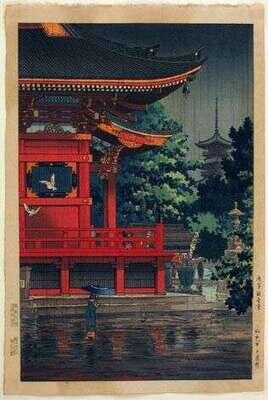 TSUCHIYA KOITSU (JAPANESE 1870-1949) RAIN AT KANNON TEMPLE, ASAKUSA