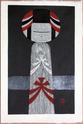 KAWANO KAORU (JAPANESE 1916-1965)THREE COLOR WOODCUTS UNTITLED (KOKESHI DOLL);UNTITLED (OWL); andUNTITLED (GIRL FEEDING BIRDS)