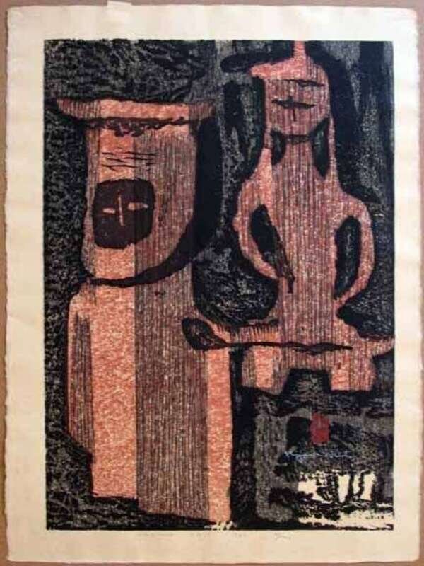 1962, signed Kiyoshi Saito in white ink with artist's seal in the image; pencil titled, dated, and numbered 42/200 in the margin; with Kiyoshi Saito watermark. Color woodcut.