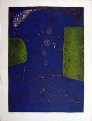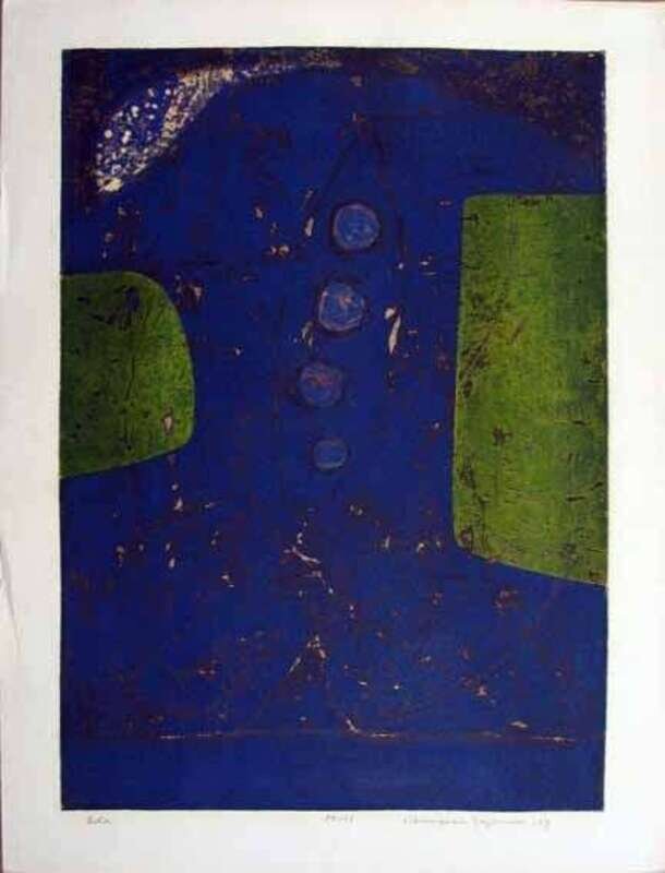 1969, pencil signed, titled, dated, and numbered 50~11 in the margin. Color woodcut.