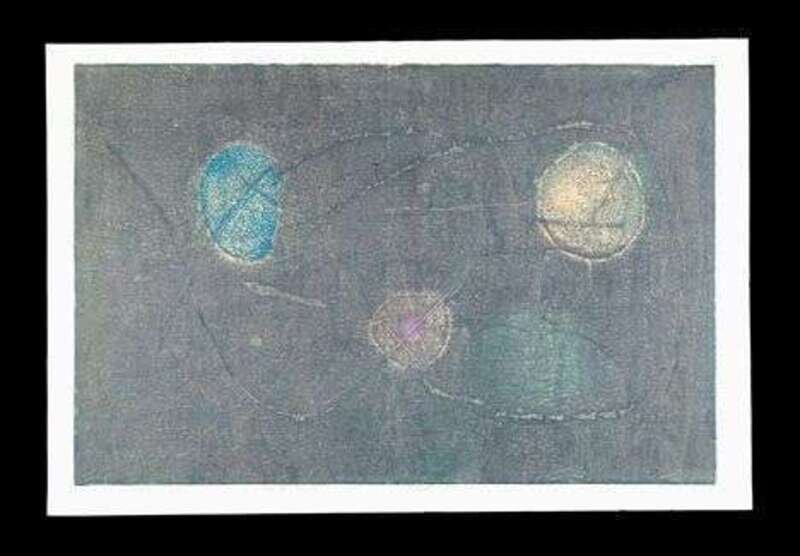 1964, pencil signed Hideo Hagiwara, dated, titled, and numbered 13/50 in the margin. Color woodcut.