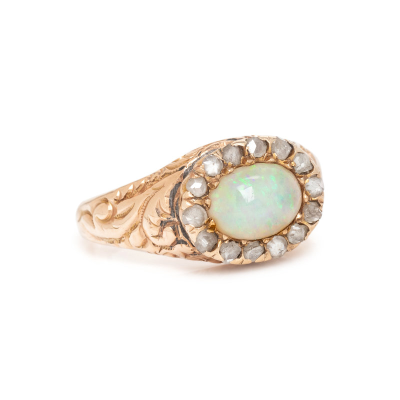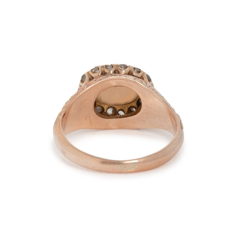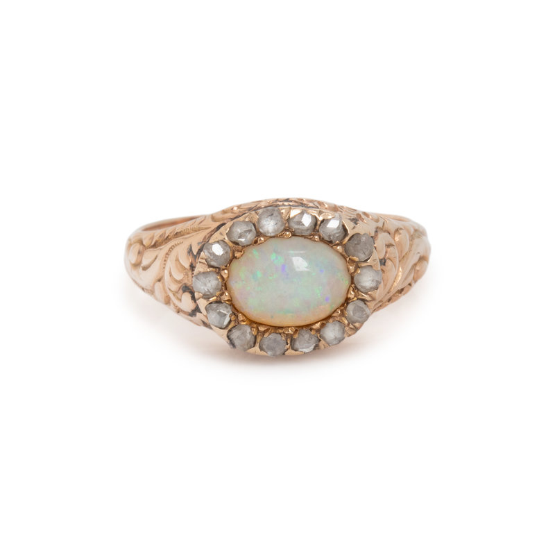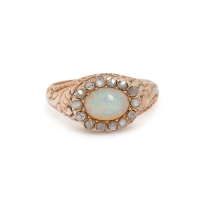 ANTIQUE, ROSE GOLD, OPAL AND DIAMOND RING