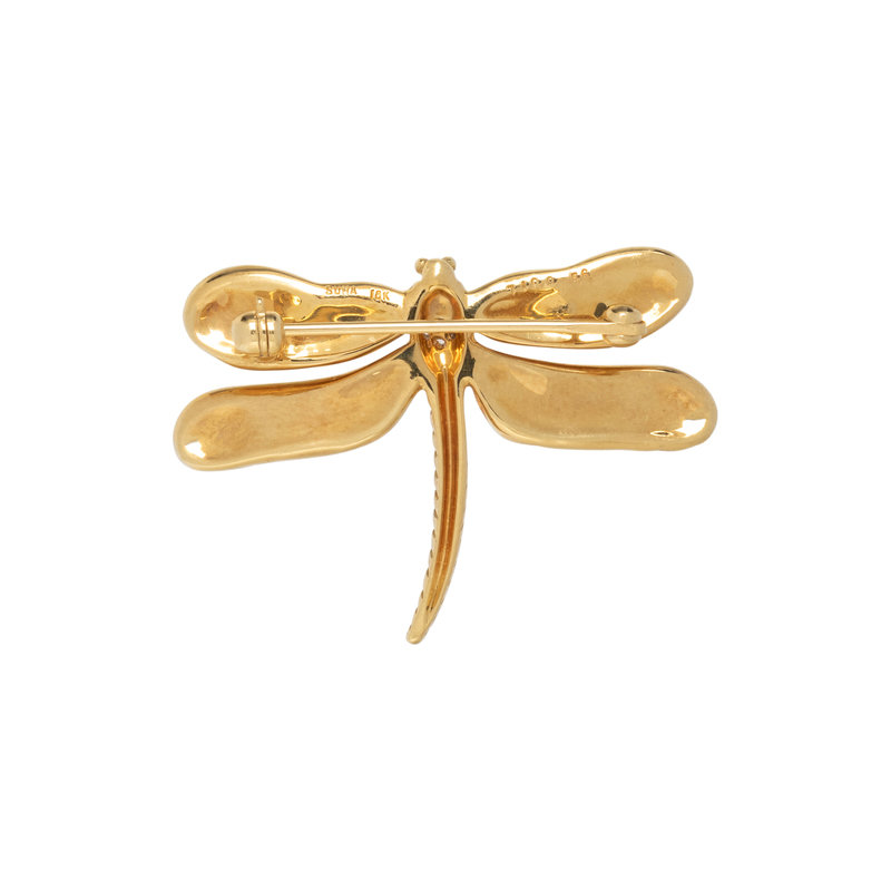 SUNA, YELLOW GOLD AND DIAMOND DRAGONFLY BROOCH