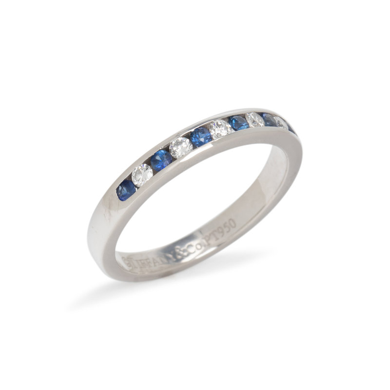 TIFFANY & CO., PLATINUM, DIAMOND AND SAPPHIRE RING