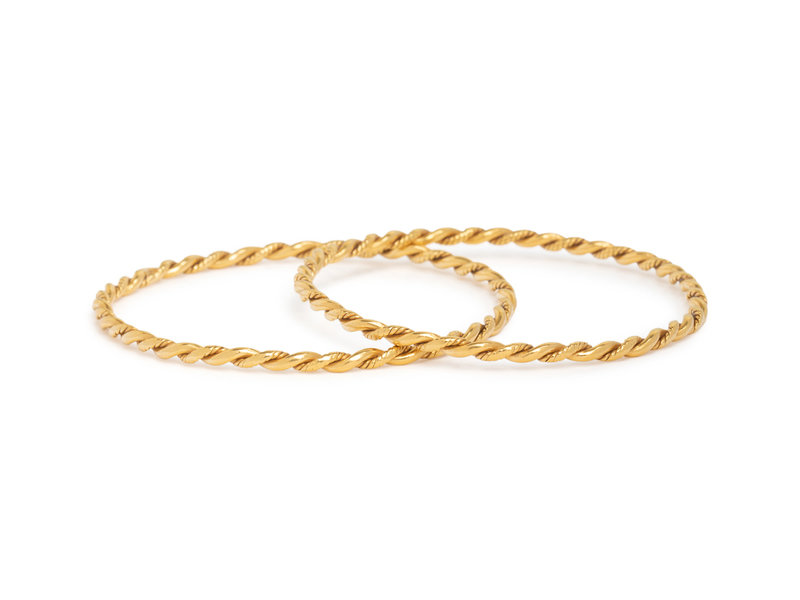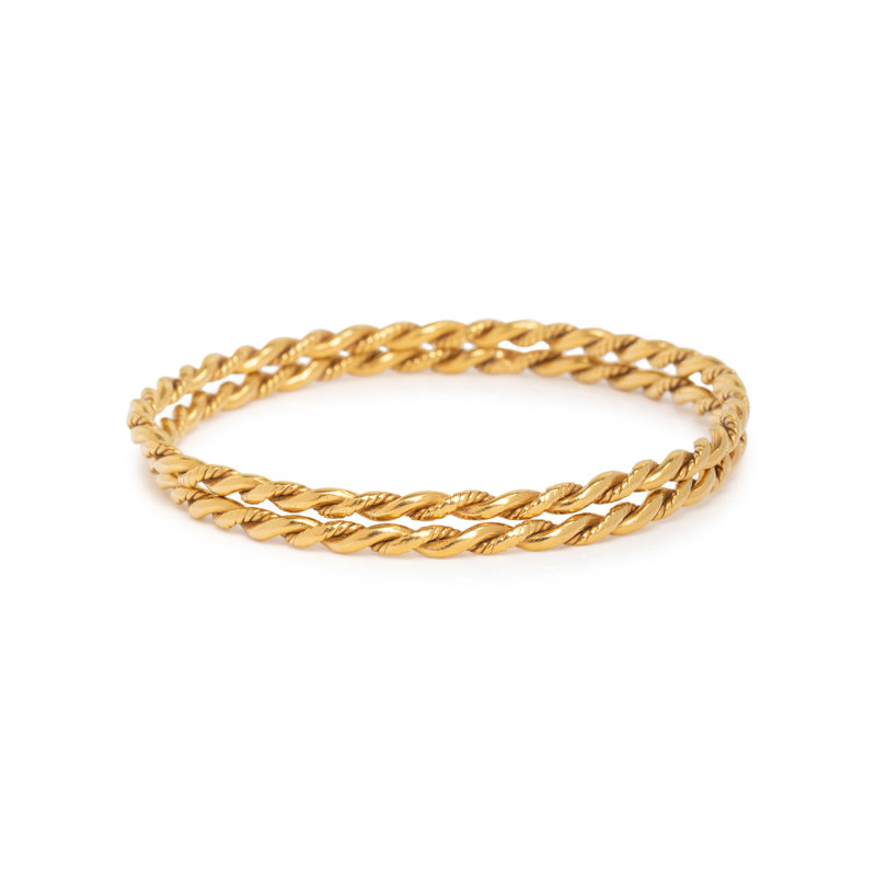 Consisting of two twisted 22 karat yellow gold wire bangles measuring approximately 3.00 mm wide. 6 3/4 inches inner circumference.