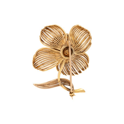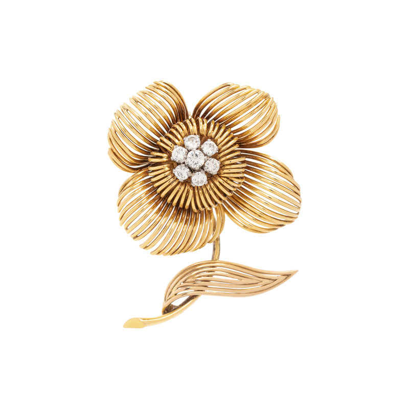 YELLOW GOLD AND DIAMOND FLOWER BROOCH