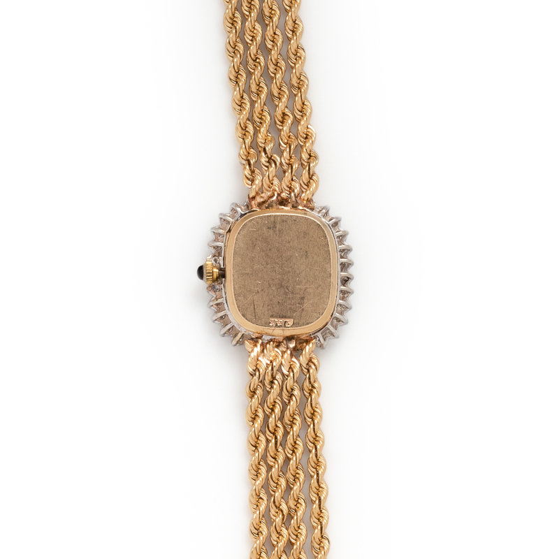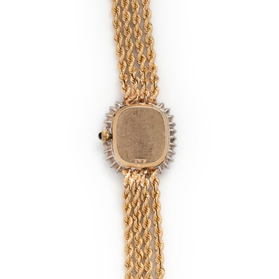 Stamps: Case back: 14K. Inner case back: 911662. Clasp: 14K.