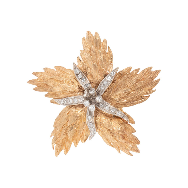 BICOLOR GOLD AND DIAMOND FLOWER PENDANT/BROOCH