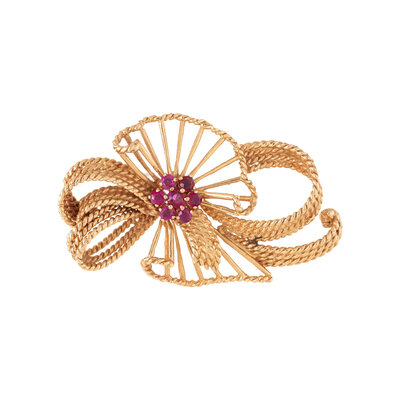 YELLOW GOLD AND RUBY BROOCH