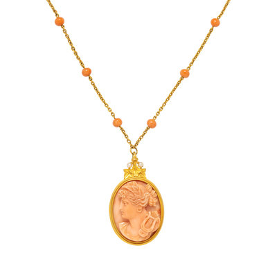YELLOW GOLD AND CORAL CAMEO PENDANT/NECKLACE
