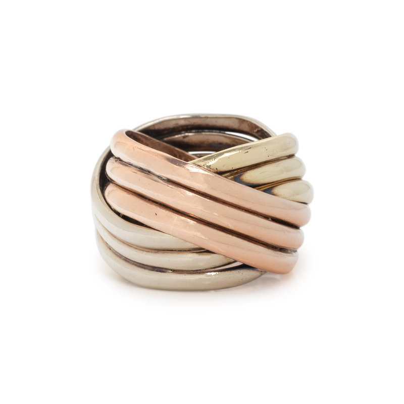 Tricolor 14 karat gold. Ring size 4 3/4.