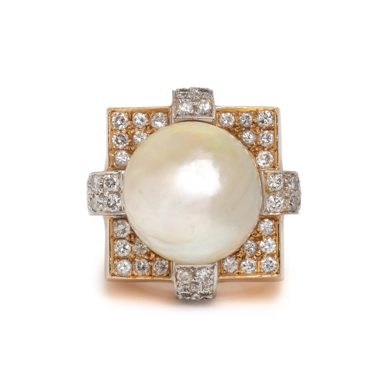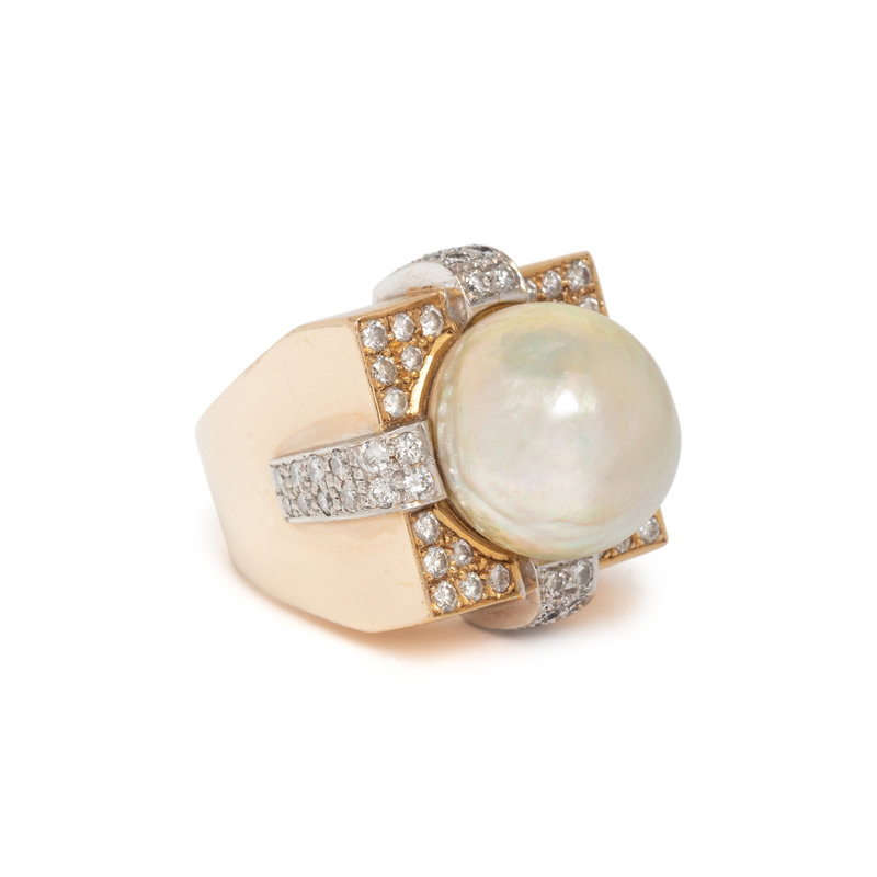 CULTURED BAROQUE PEARL AND DIAMOND RING