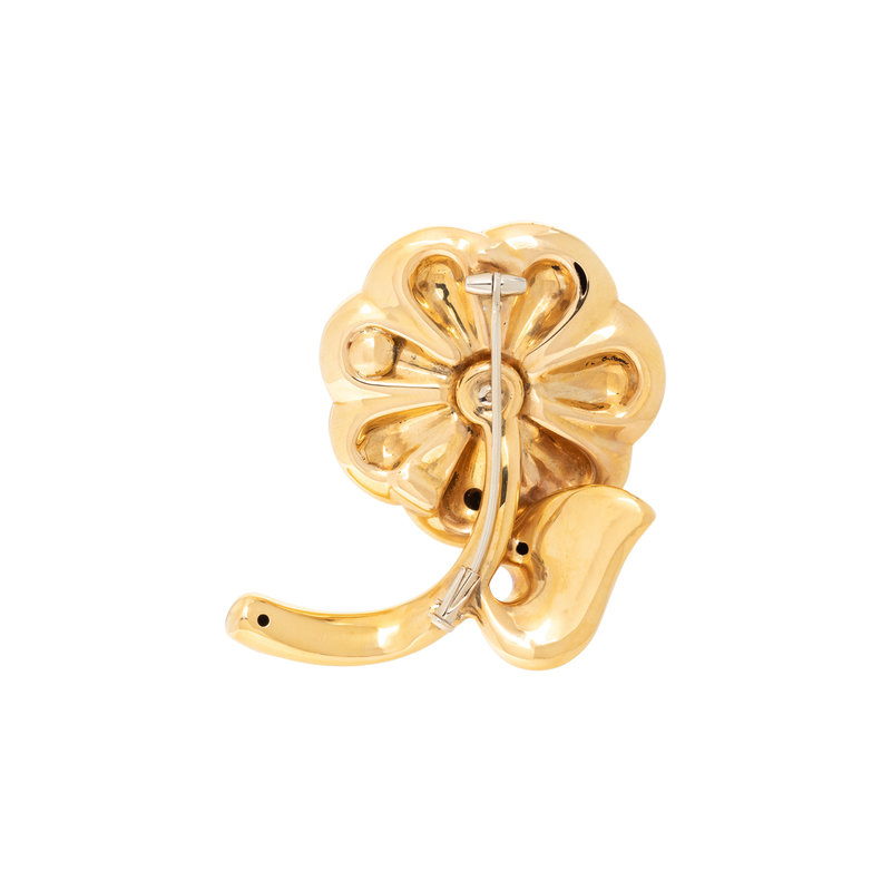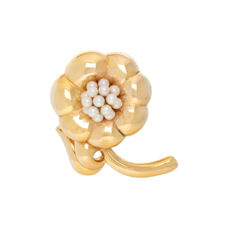 YELLOW GOLD AND CULTURED PEARL FLOWER BROOCH