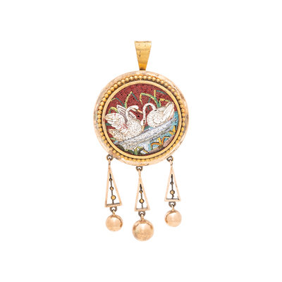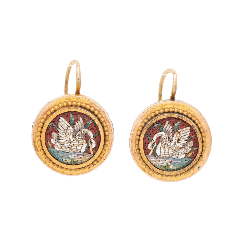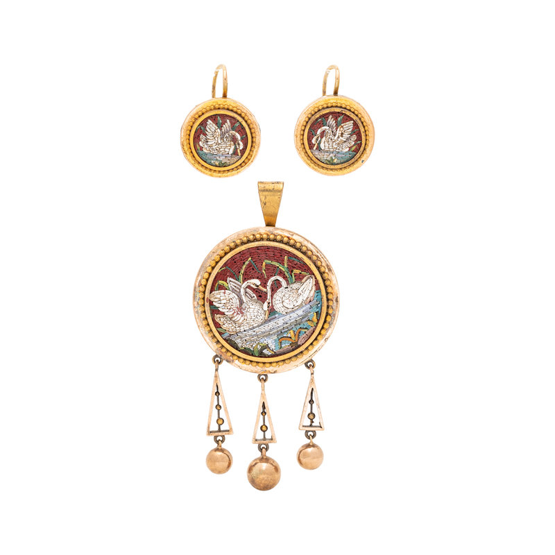 ETRUSCAN REVIVAL, YELLOW GOLD AND MICROMOSAIC SET