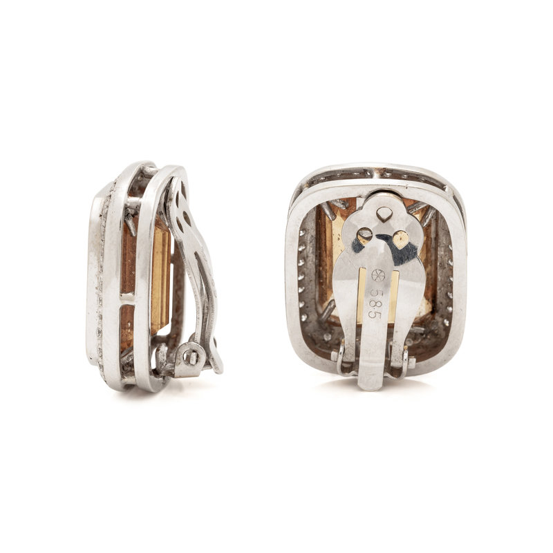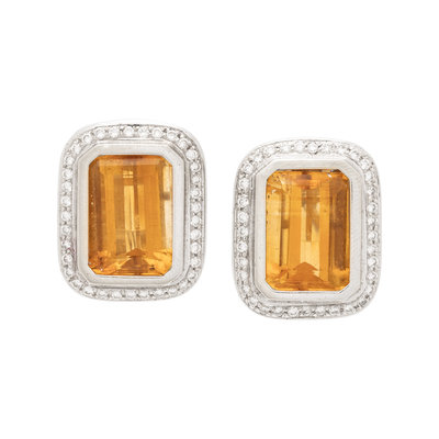 WHITE GOLD, CITRINE AND DIAMOND EARCLIPS