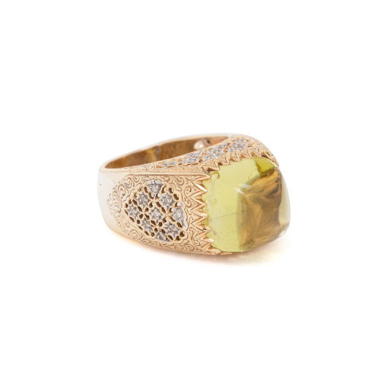 BICOLOR GOLD, PERIDOT AND DIAMOND RING