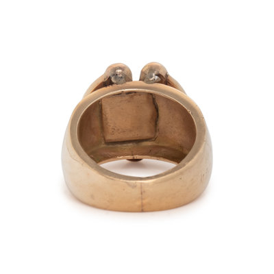 Old European cut diamonds and cushion mixed cut sapphires. 14 and 18 karat yellow gold. Ring size 6 1/4.