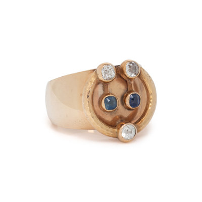 YELLOW GOLD, DIAMOND AND SAPPHIRE