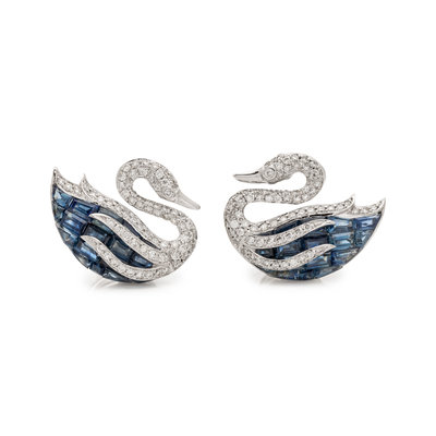 DIAMOND AND SAPPHIRE SWAN EARRINGS