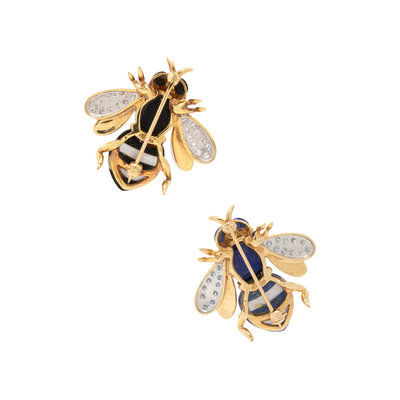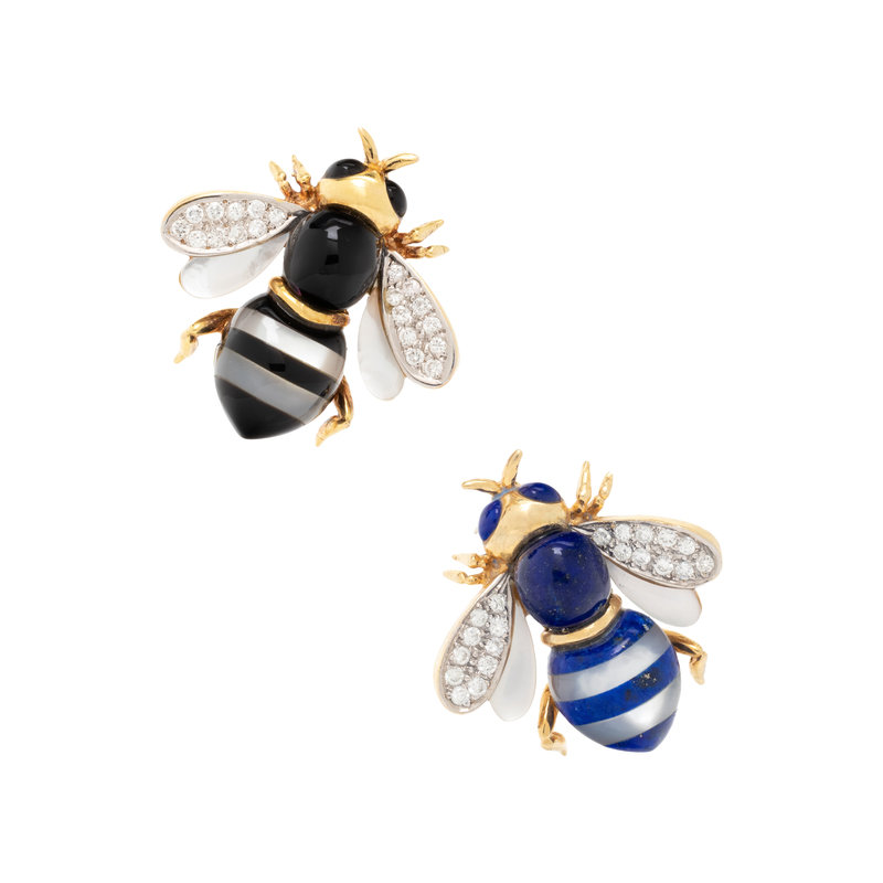 ASCH GROSSBARDT, DIAMOND, MOTHER-OF-PEARL, LAPIS LAZULI AND ONYX BEE BROOCHES