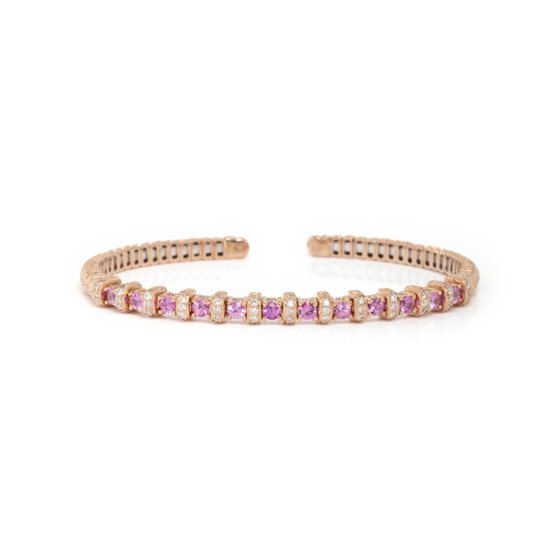 ROSE GOLD, PINK SAPPHIRE AND DIAMOND BANGLE BRACELET
