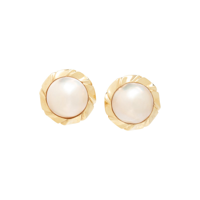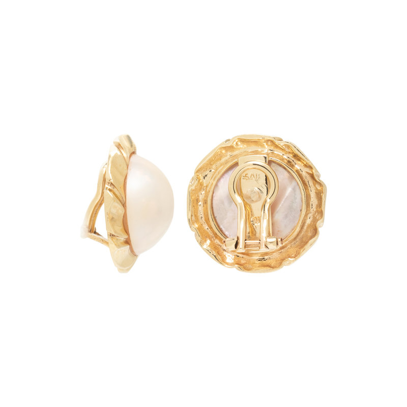 YELLOW GOLD AND MABE PEARL EARCLIPS