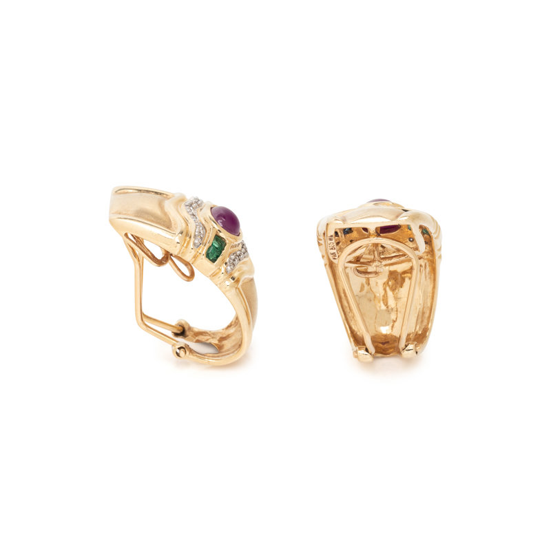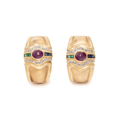 YELLOW GOLD, MULTIGEM AND DIAMOND EARCLIPS