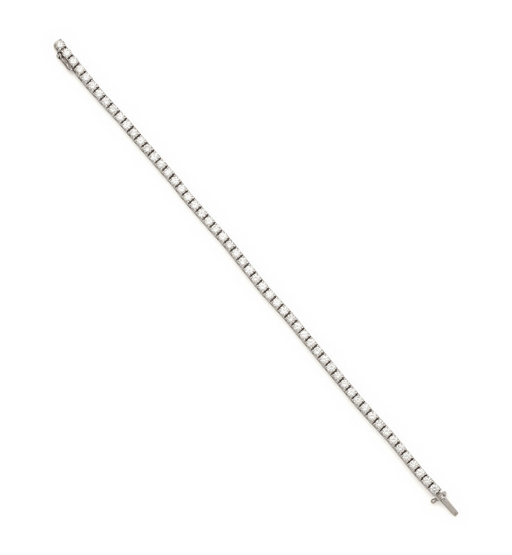 Containing 56 round brilliant cut diamonds weighing approximately 4.00 carats total. 7 inches long.