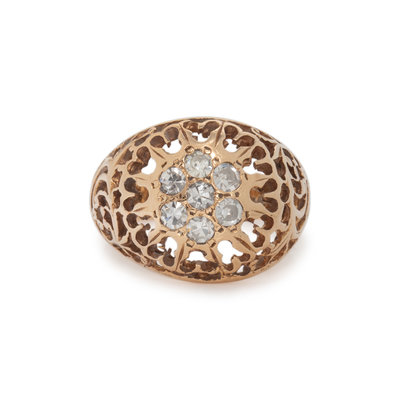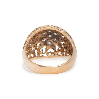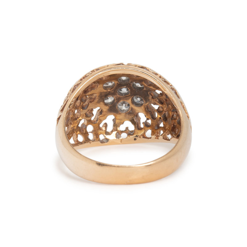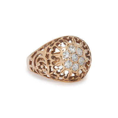 Single cut diamonds and 14 karat yellow gold. Ring size 7 1/2.