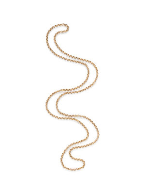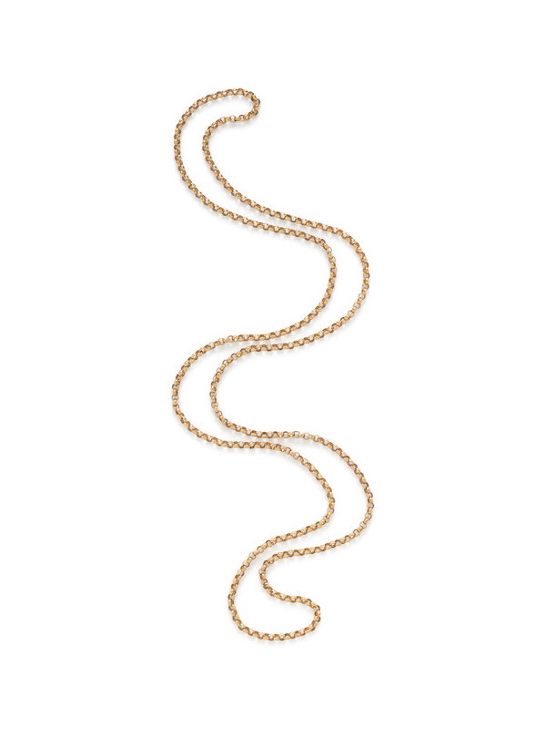 Consisting of a rolo chain necklace measuring approximately 4.55 mm wide. 48 inches long.