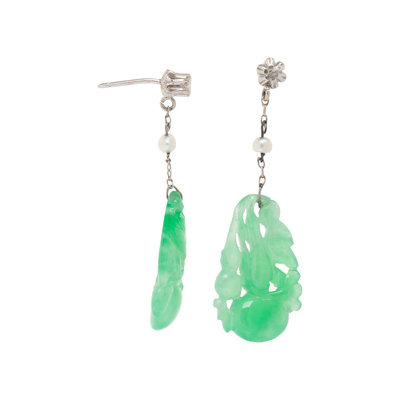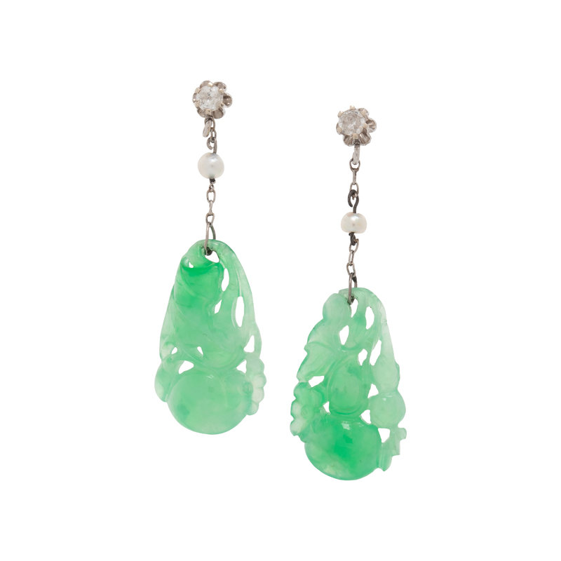 ANTIQUE, JADE, DIAMOND AND SEED PEARL EARRINGS
