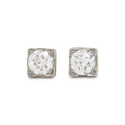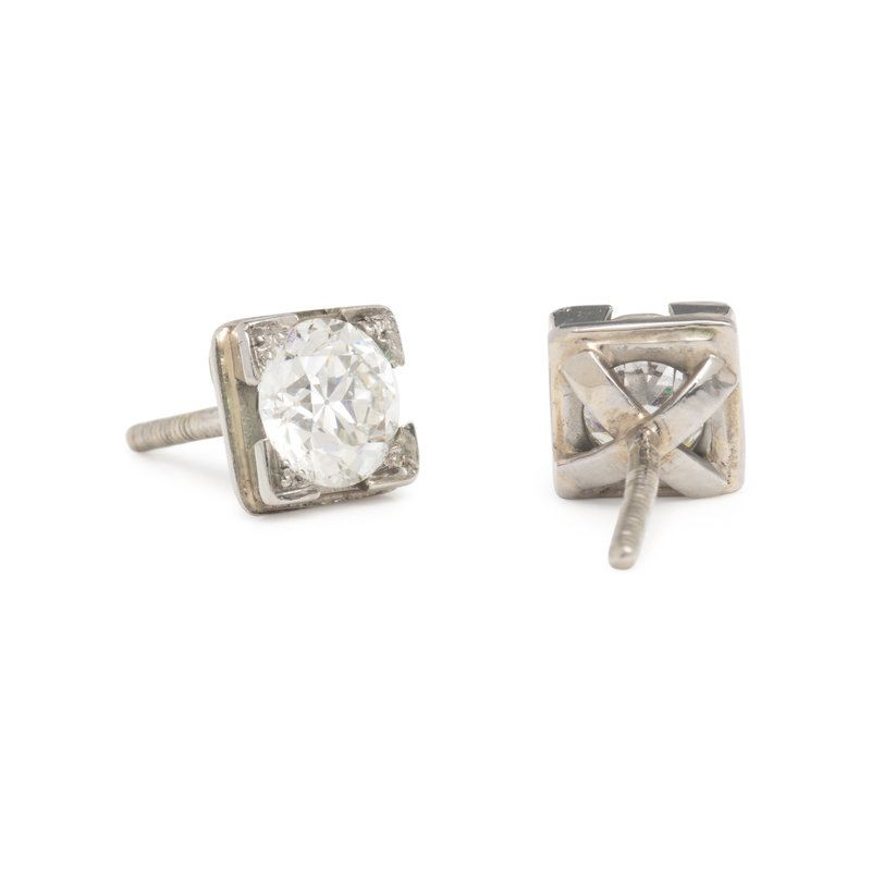 Two old European cut diamonds weighing approximately 1.95 carats total, threaded posts and backs. 18 karat white gold.