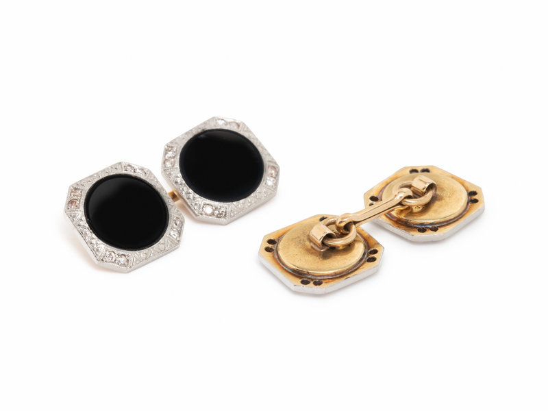 ONYX AND DIAMOND CUFFLINKS