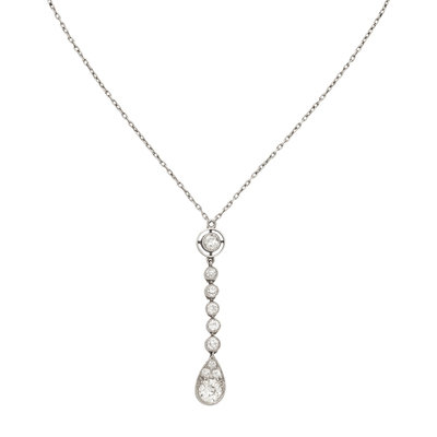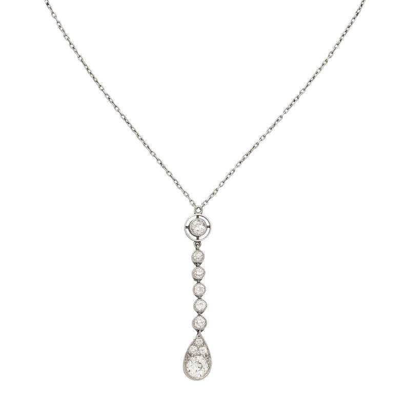 Old mine cut diamonds weighing approximately 1.20 carats total. Platinum. 14 3/4 inches long.