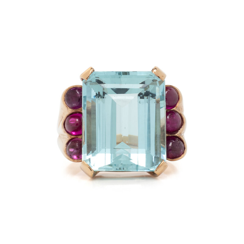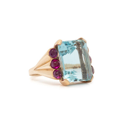 AQUAMARINE AND RUBY RING