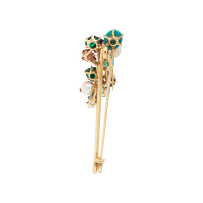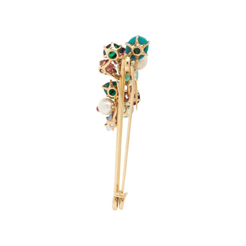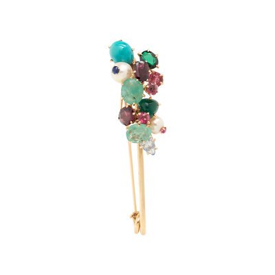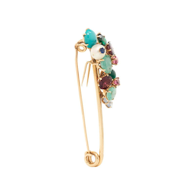 YELLOW GOLD AND MULTIGEM BROOCH