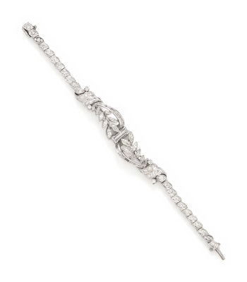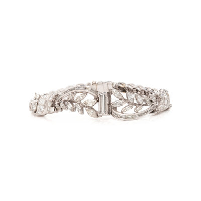 Containing numerous mixed cut diamonds weighing approximately 5.00 carats. Mounted in platinum. 6 1/2 inches long.