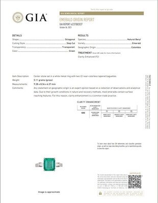 GIA, 2023, Report No. 6237082037, Natural Beryl, Emerald, Colombia, Moderate Clarity Enhancement