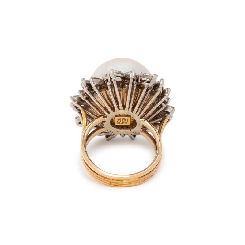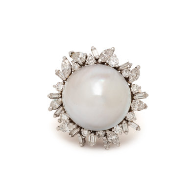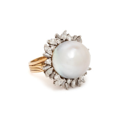 CULTURED PEARL AND DIAMOND RING