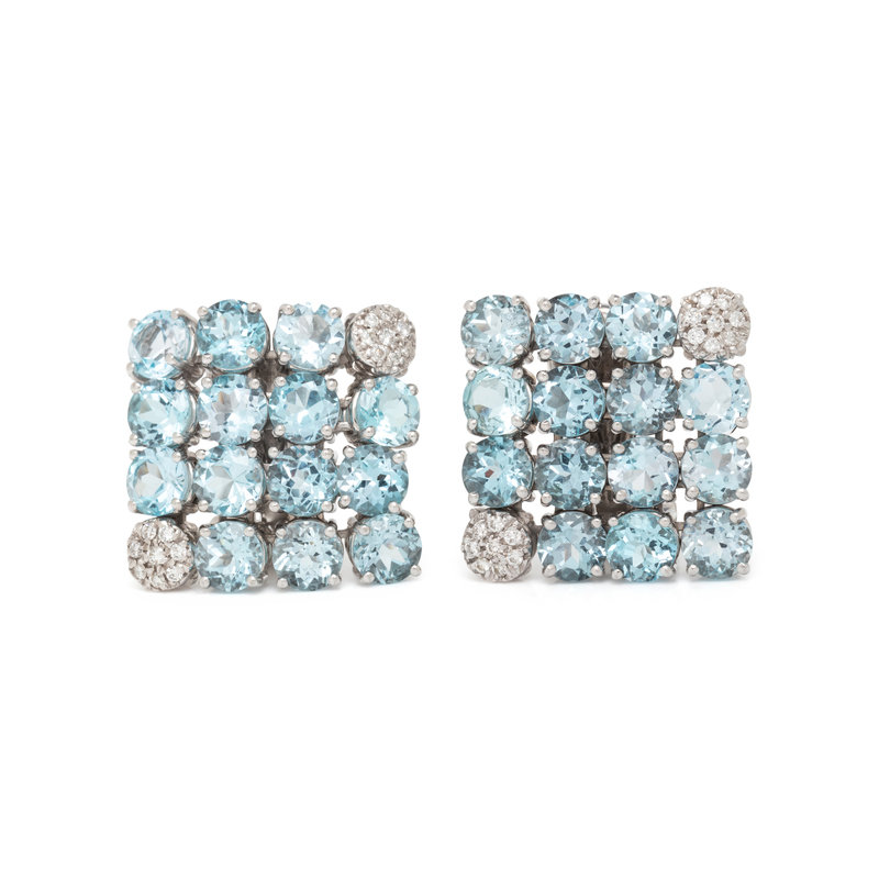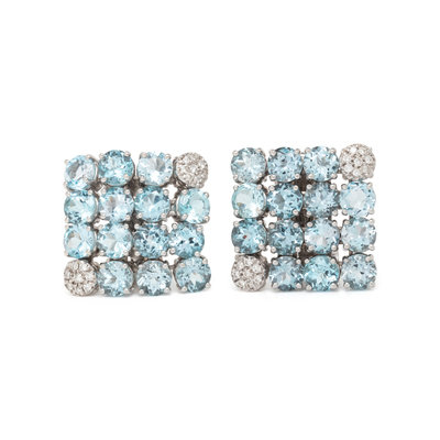GAVELLO, WHITE GOLD, AQUAMARINE, BLUE TOPAZ AND DIAMOND EARCLIPS