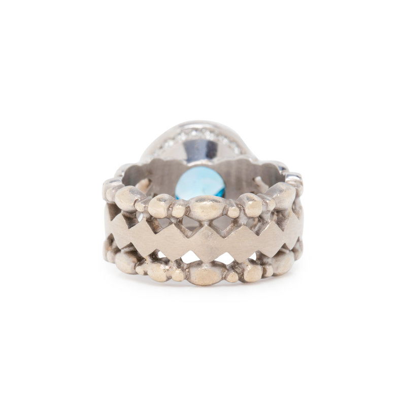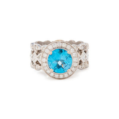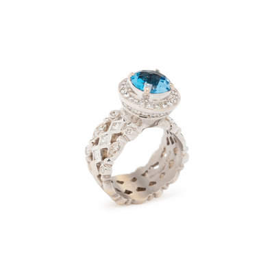 DORIS PANOS, BLUE TOPAZ AND DIAMOND RING