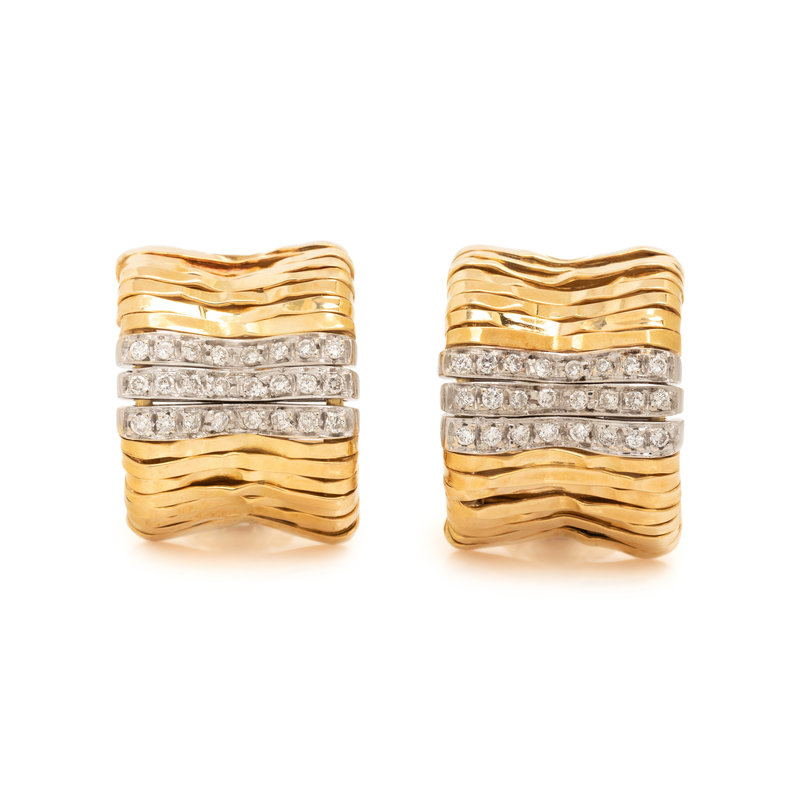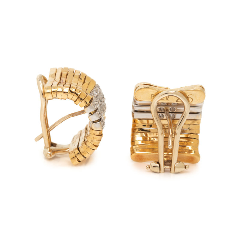 ORLANDINI, BICOLOR GOLD AND DIAMOND EARCLIPS