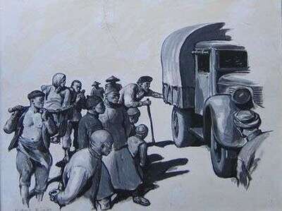 ROBERT RIGGS (AMERICAN 1896 - 1970) 'VILLAGERS APPROACHING TRUCK'
