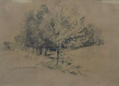 ARTHUR BOWEN DAVIES (AMERICAN, 1862-1928) COWS BY A STREAM