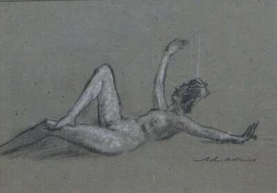 ARTHUR BOWEN DAVIES (AMERICAN, 1862-1928) RECLINING NUDE WITH CROSSED LEGS AND ARMS EXTENDED